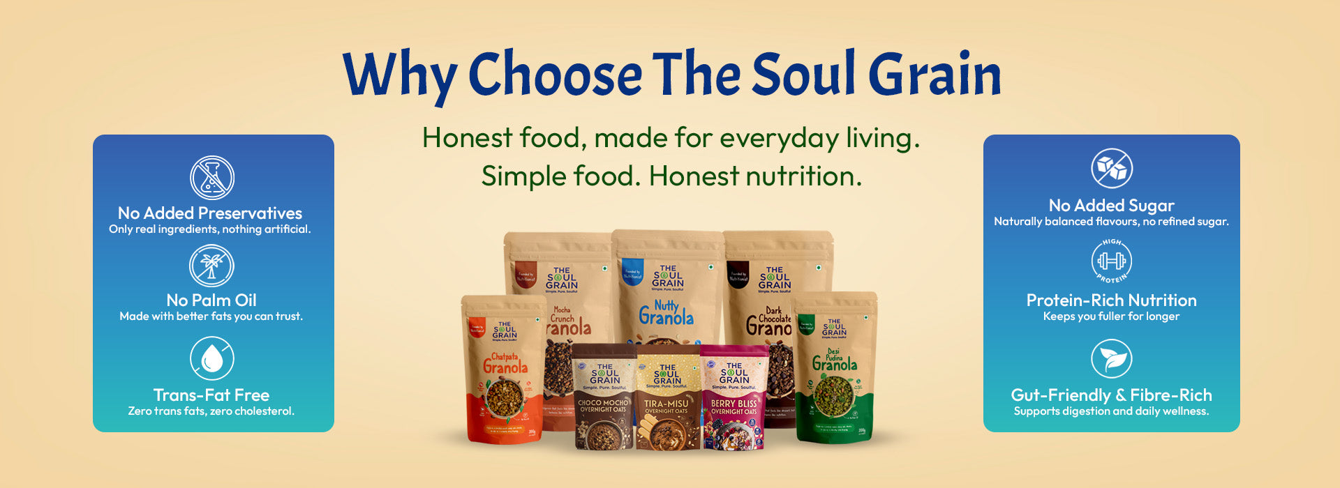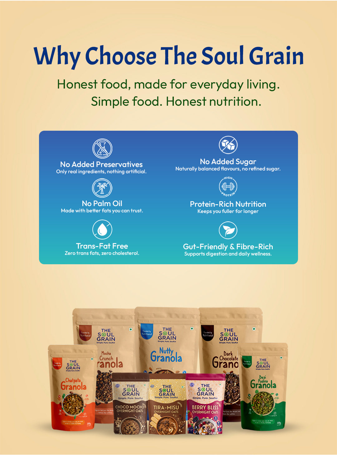Yes. All our products are crafted using natural ingredients, with no added preservatives, no palm oil, and no refined sugar (where mentioned). Our recipes are designed to support balanced nutrition and everyday wellness.